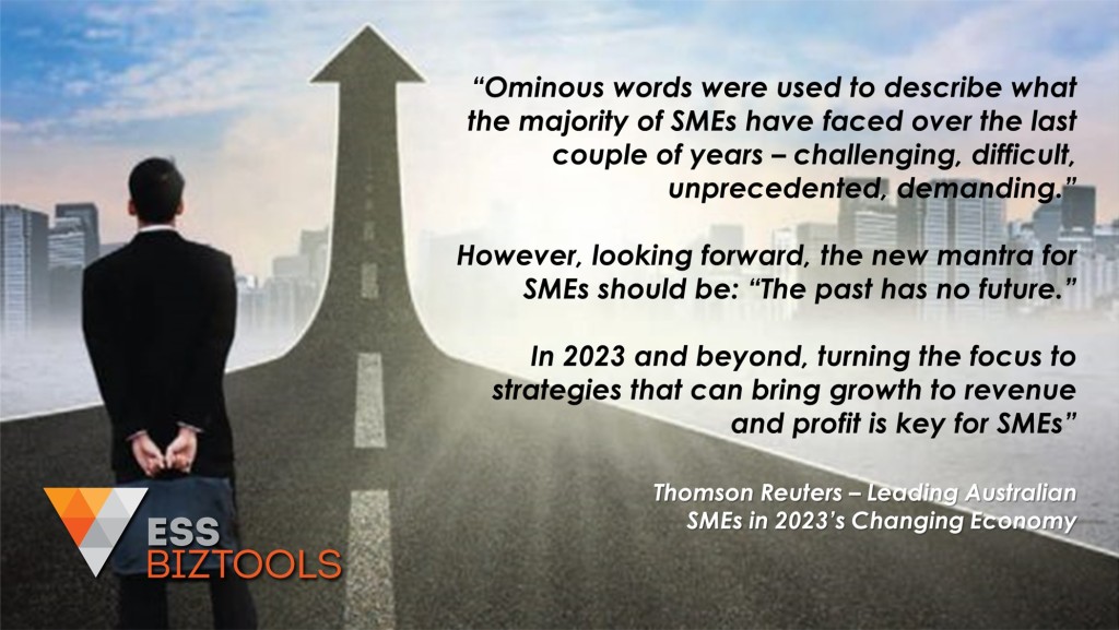 In 2023 and beyond, turning the focus to strategies that can bring growth to revenue and profit is key for SMEs”. Thomson Reuters, white paper “Leading Australian SMEs in 2023’s Changing Economy”.